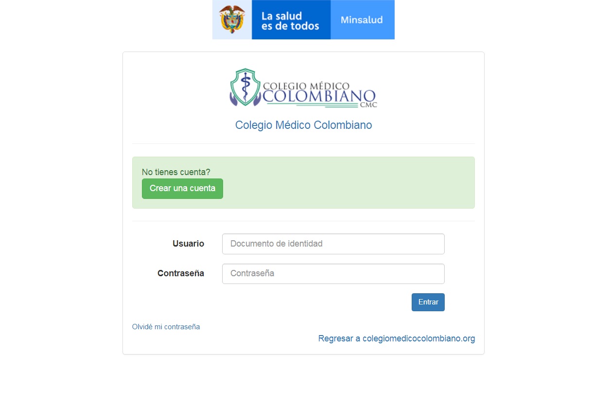 - Crea una cuenta de usuario en la web del Colegio Médico Colombiano.